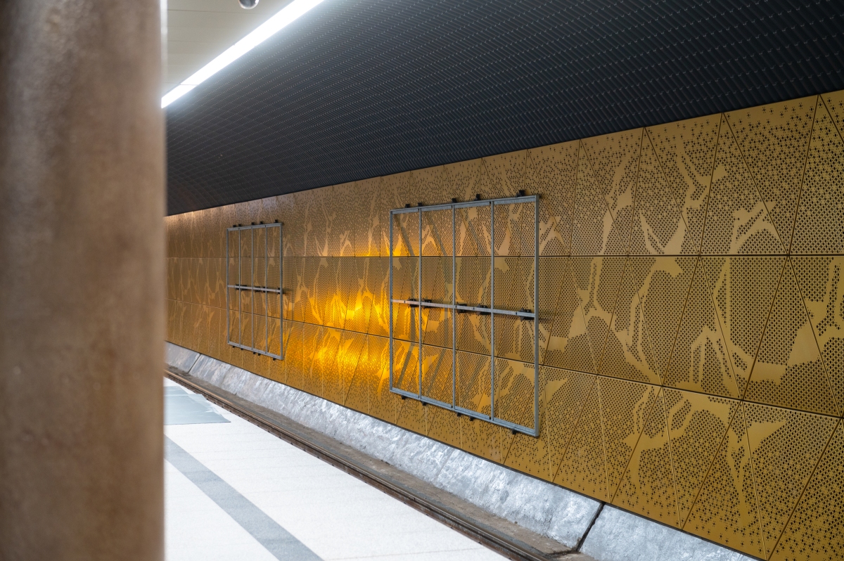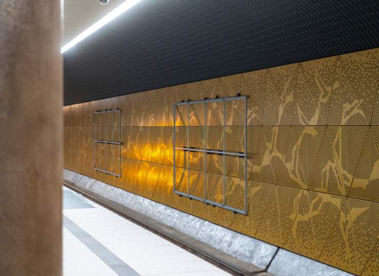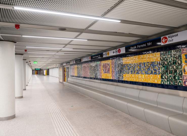 ÉSZ集团参与了布达佩斯M3地铁线上9个车站的改造工程。项目在竣工验收阶段,安装了由KÉSZ集团设计制造的金属覆层。为保护站内墙面,采用了匈牙利首次使用的特殊防涂鸦涂层,且在吊顶设计和个性化覆层面板方面采用了独特方案。改造完成后,每日有数十万乘客在这些车站通过,视觉效果震撼。项目中安装了超过3000平方米的伞形结构和1800平方米的索网覆盖罩。 项目图册