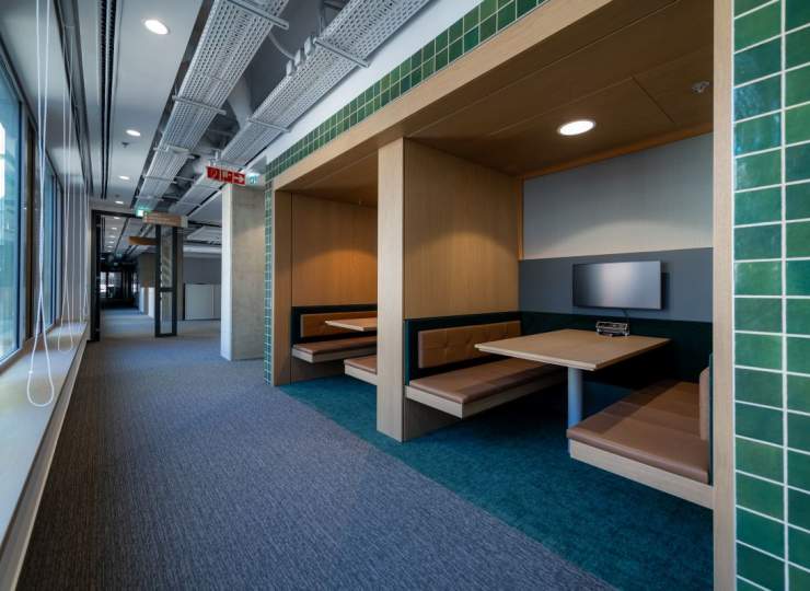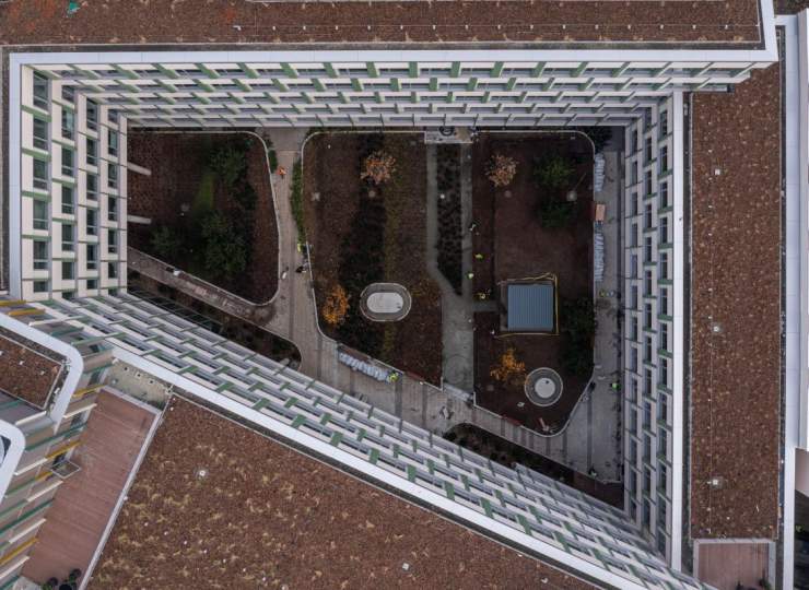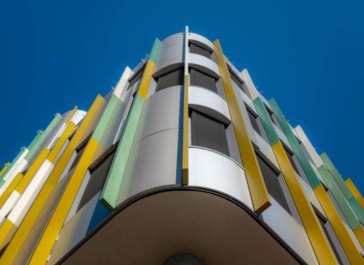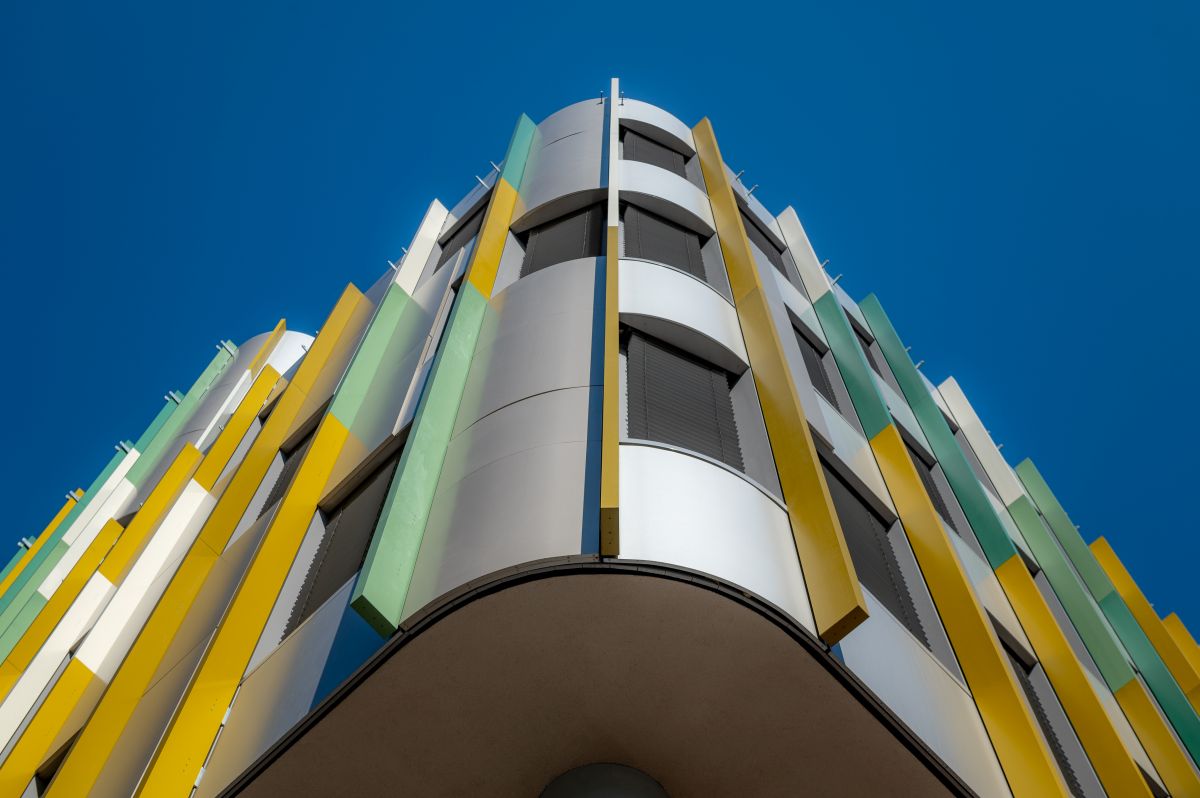 Pillar办公楼的建筑造型独特,通过楼体宽窄错落的设计和圆润的建筑角落,形成了极具辨识度的城市轮廓。项目中使用了4,300平方米的悬挂式托盘板、2,100平方米的平面复合板以及6,000米彩色收口型材。整体建筑呈现出活泼的立体感,配合丰富的彩色百叶和大量绿化与水景,成为办公市场上的一颗璀璨明珠。该项目荣获LEED金级认证。