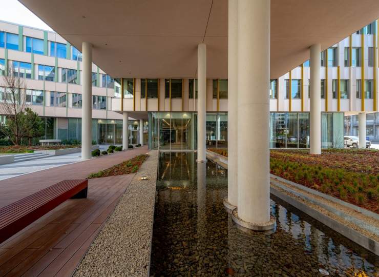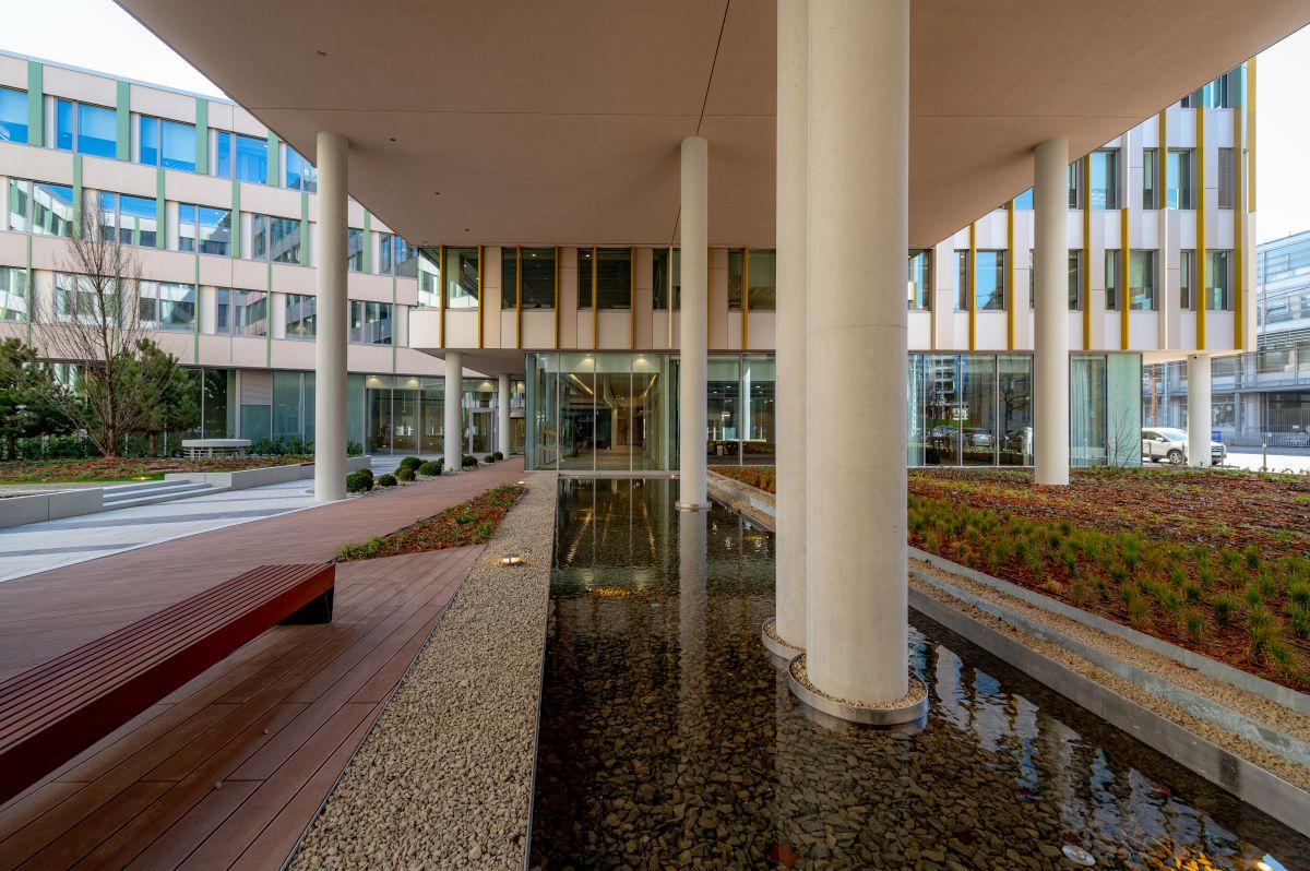 Pillar办公楼位于布达佩斯第13区,作为Váci路与Dózsa György路办公走廊的重要组成部分,由KÉSZ集团作为总承包商受GTC集团委托,采用交钥匙工程模式建设完成。该建筑总面积超过44,000平方米,绝大部分为租赁办公空间,按照美国跨国公司埃克森美孚的高标准需求,打造了未来办公的高品质环境。项目内还配备了绿化花园、咖啡厅、体育设施和会议中心,办公区为主体。